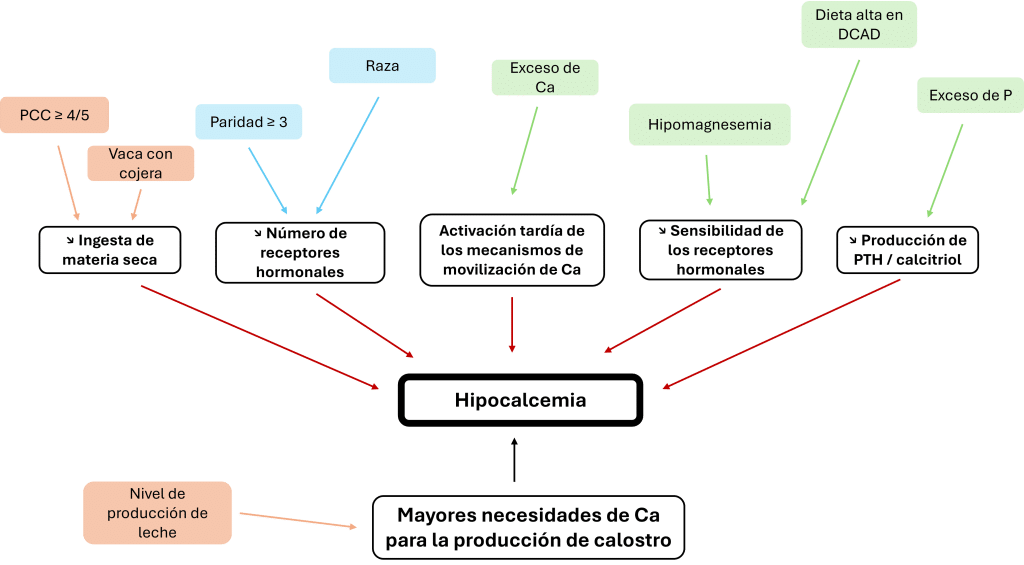 Si la vaca no logra activar todos estos mecanismos, la demanda de Ca no se satisface y puede ocurrir hipocalcemia.