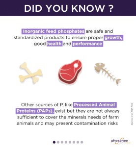 The phosphorus (P) found in animal feed can come either from organic or inorganic sources. Animal-derived phosphorus sources include Meat and Bone Meal (MBM), Meat Meal (MM) and other Animal Derived Proteins (ADP) like blood meal, feather meal, fish meal and poultry meal. However, the use of these Processed Animal Proteins (PAPs) on the market is strictly regulated due to their association with Bovine Spongiform Encephalopathy (BSE). Phosphorus (P) in feed ingredients from plant origin is another organic source. This P is mainly stored under the form of phytic acid which is poorly digestible by monogastric animals. The addition of phytase is thus necessary to make the plant phosphorus available for animals. But phytases are generally prohibited in organic farming and sensitive to heat and acid conditions which can lower their efficiency. Finally, Inorganic Feed Phosphates (IFP) are safe, standardized inorganic sources of P with high digestibility enabling more efficient P utilization by the animals and reduced environmental excretion of P. They are appreciated for their consistent chemical composition which facilitates formulation and manufacturing process while supporting both performance and compliance with regulatory standards.