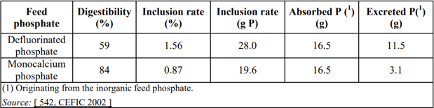 The “Use of highly digestible inorganic phosphates to partially replace traditional sources of phosphorus in the diet” is mentioned in the Official Journal of the European Union as one of the Best Available Techniques (BAT) to reduce total P excretion while meeting the nutritional needs of animals (European Commission, 2017).