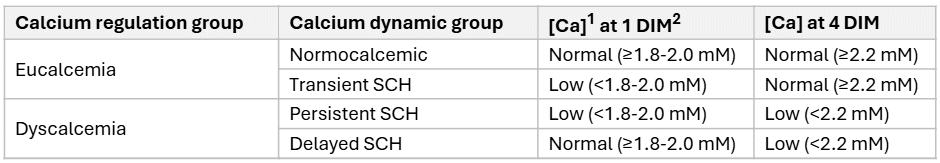 Table 2: Categorization of the different calcium dynamic groups (adapted from Abuelo, 2025).