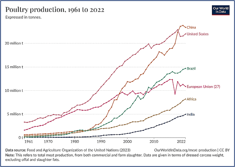Figure 2: Poultry production from 1961 to 2022 (OurWorldInData.org)