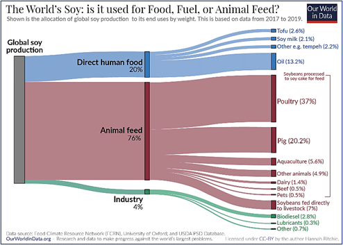 Figure 4: The world’s soy: is it used for food, fuel or animal feed (OurWorldInData.org)