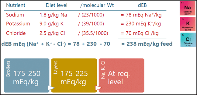 Figure 5: Dietary electrolyte balance (dEB) calculation and poultry requirements (SFR, 2024)