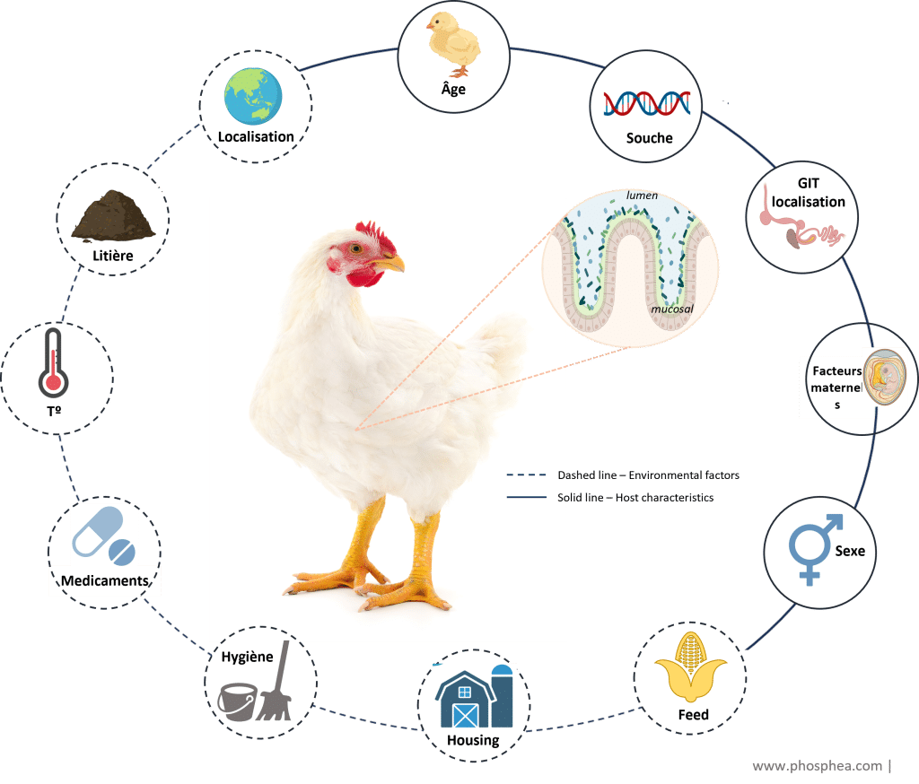 L’équilibre intestinal peut être affecté par des facteurs tels que la gestion, la qualité des aliments, l’environnement et d’autres facteurs tels que :