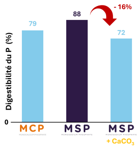 Selon de nombreuses études, il semble essentiel de limiter l’apport en Ca dans l’alimentation afin de maintenir un rapport Ca/P adapté à l’espèce et au stade de développement, afin d’éviter les effets antinutritionnels du Ca. Les rapports Ca/P par espèce sont disponibles dans le Tableau 1.