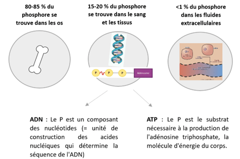 Le phosphore (P) est le deuxième élément macro-nutritionnel le plus abondant dans le corps :