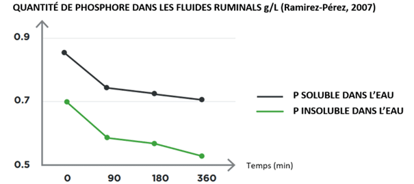 - Pour être utilisé par les micro-organismes du rumen, le phosphore présent dans l’alimentation doit être dissous ! En fait, la disponibilité du phosphore provenant des sources minérales est directement liée à leur solubilité dans le rumen.