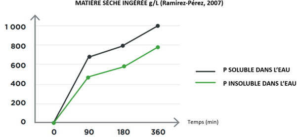 - La fraction de phosphore insoluble est en grande partie solubilisée dans le caillette et devient potentiellement absorbable dans l’intestin grêle.