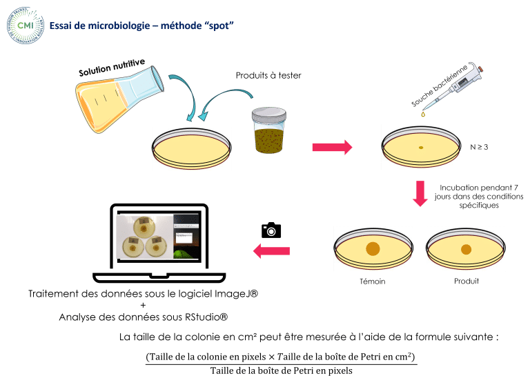 Figure 7 : Analyse microbiologique – méthode « spot » réalisée dans notre test in vitro (CMI, 2025)