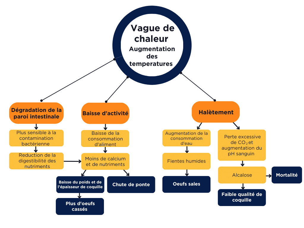 Figure 1. Conséquences du stress thermique sur les poules pondeuses et les reproducteurs