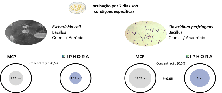 Figura 8: Efeito do HumIPHORA no crescimento bacteriano (E. coli e C. perfringens)