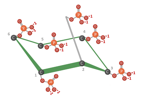 Figura 2: Ácido fítico (hexafosfato de mio-inositol; IP6). Representação do IP6 em um ambiente extremamente básico, evidenciando sua alta carga aniônica. Criado em BioRender.com